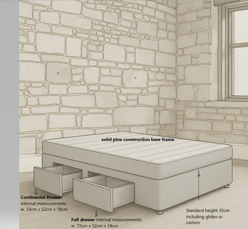 Upholstered Divan Base Only - 4 Drawer Storage Option