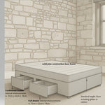 Available in standard or any bespoke sizes, a 4 drawer storage bed base is a practical bed foundation that includes 4 built in drawers for convenient under bed storage. 2 large drawers at the foot at the bed and 2 continental drawers which open in front of bedside cabinets