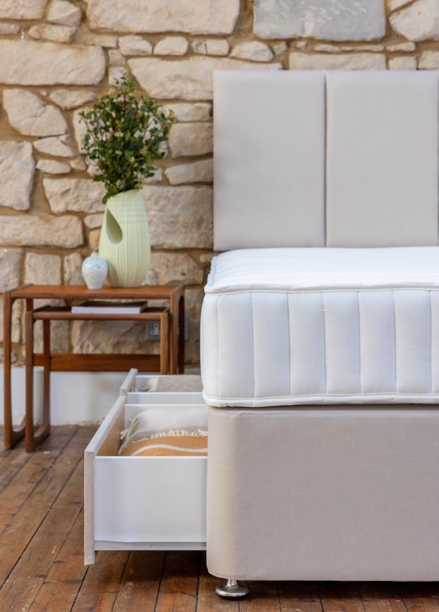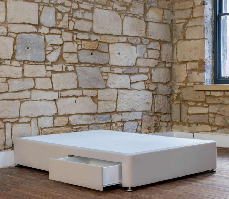 Available in standard or any bespoke sizes, our drawer storage bed base is a practical bed foundation that includes 2 built in drawers for convenient under bed storage. 2 large drawers at the foot at the bed (or on one side for single beds)